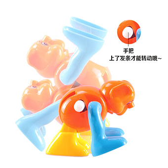 这款360度后空翻的公仔只需要向后轻轻一扭,它就会360度后空翻旋转的跳动,你把它用力扭紧直到发条扭不动,它可以一气呵成连续表演360度前空翻的动作八次,这款好玩新奇的小玩具,一定要记得把它带回家啊。