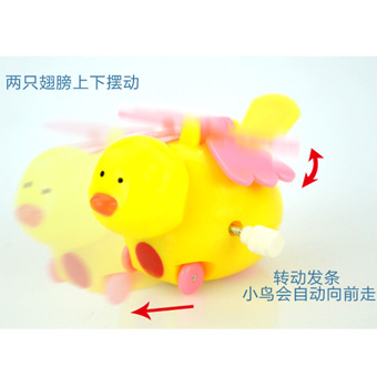 【宝贝详情】压住驱动轮,拧紧发条,松开后,小鸟会啪啪啪的拍动着它的翅膀向前冲去,十分可爱,上链小鸟玩具也很小巧,便于宝宝拿握,能引起宝宝的注意。且颜色有多种,可以让宝宝组成一个小鸟队伍,放在那里都觉得特别可爱,赶紧给宝宝买几只吧!