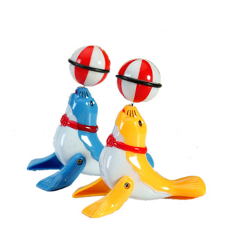 可旋转会走路球会转的上发条小海豚玩具,装上小球,上紧发条后,放在地上,小海豚二只脚会一颠一颠向前走,当然步子迈的很小(走动的时候,小海豚头顶上顶着的小球会转动的哦),然后小海豚在地上一圈一圈转圈,然后小海豚二只脚又直起来,开始走路了,这样不停变换,很好玩。。经典热卖玩具,宝宝非常喜欢。